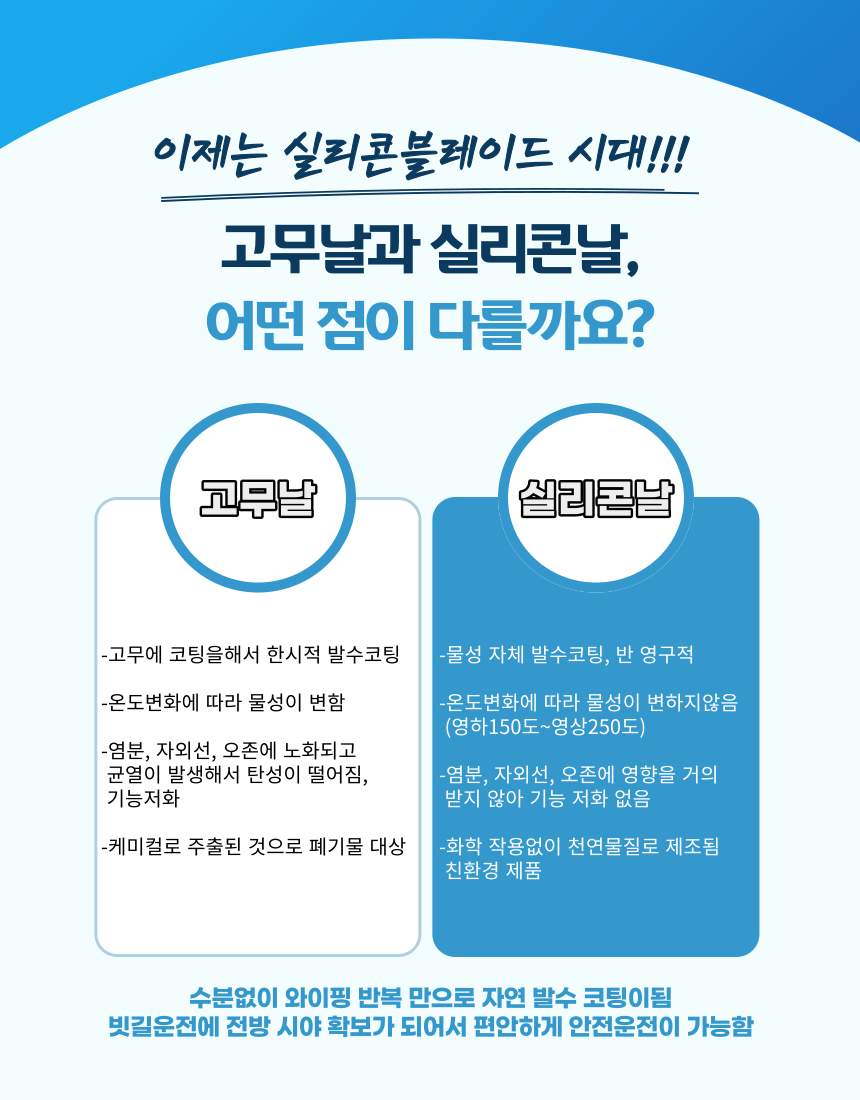 실리콘와이퍼가 기존 고무와이퍼의 단점을 모두 커버하면서,
